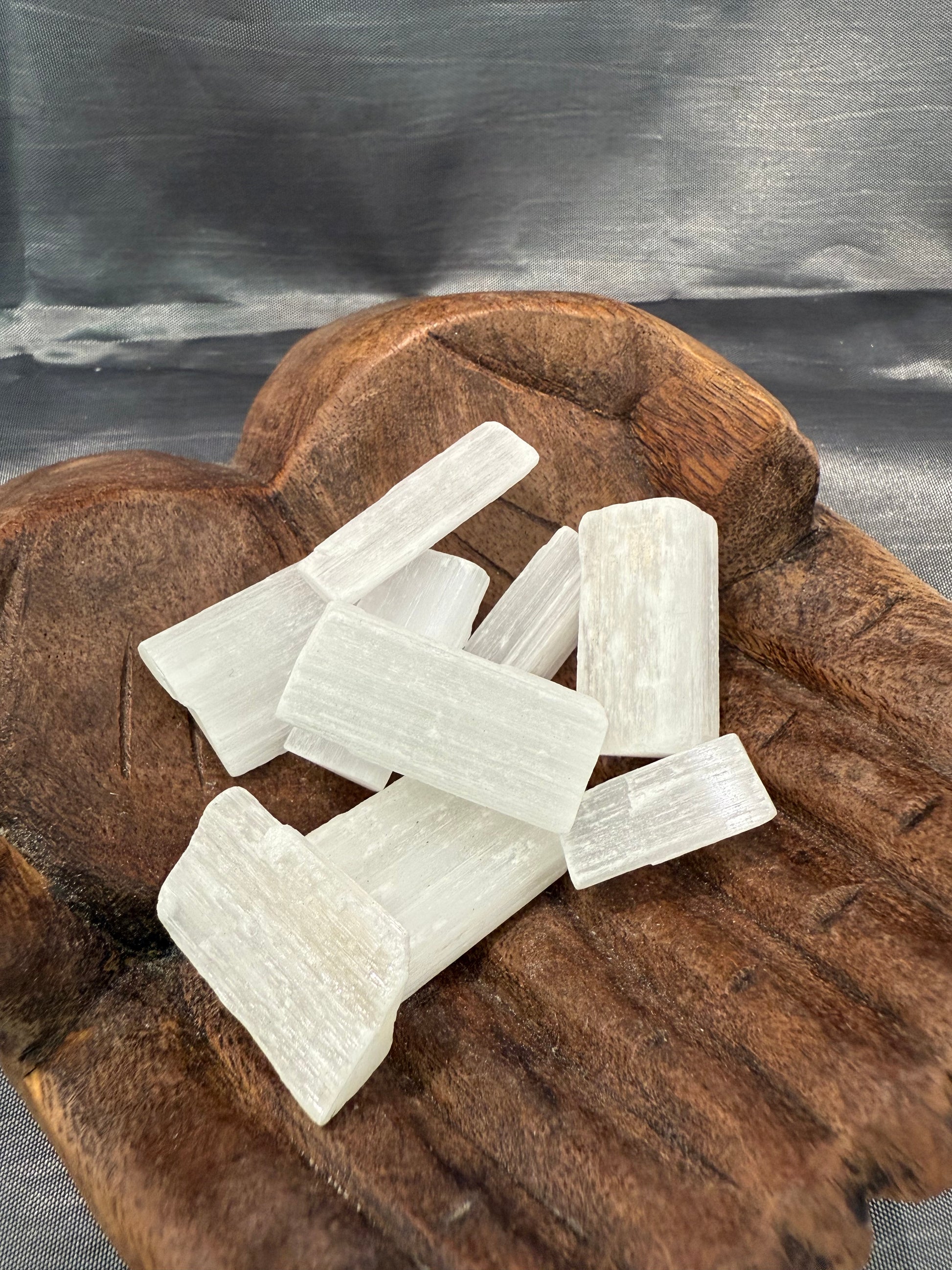 Selenite is a crystal of purity, clarity, and spiritual connection. Spiritually, it’s believed to cleanse energy, open the crown chakra, and promote peace and calm. Often used for meditation and clearing other crystals, it helps create a protective, uplifting environment.